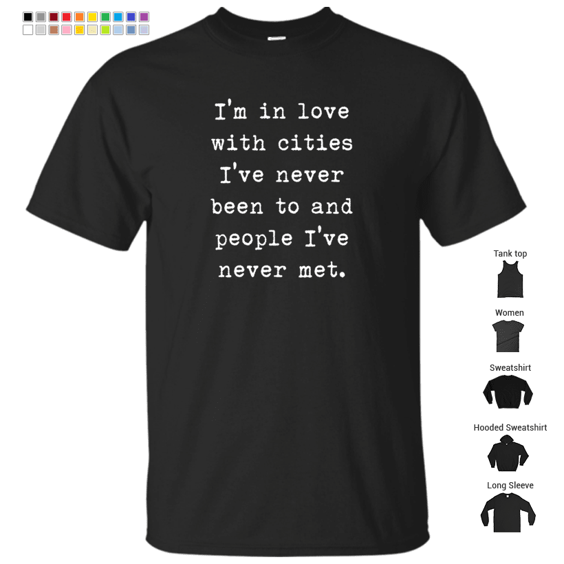 I’m in love with cities I’ve never been to and people I’ve never met – John Green, Travel, Quotes T-Shirt